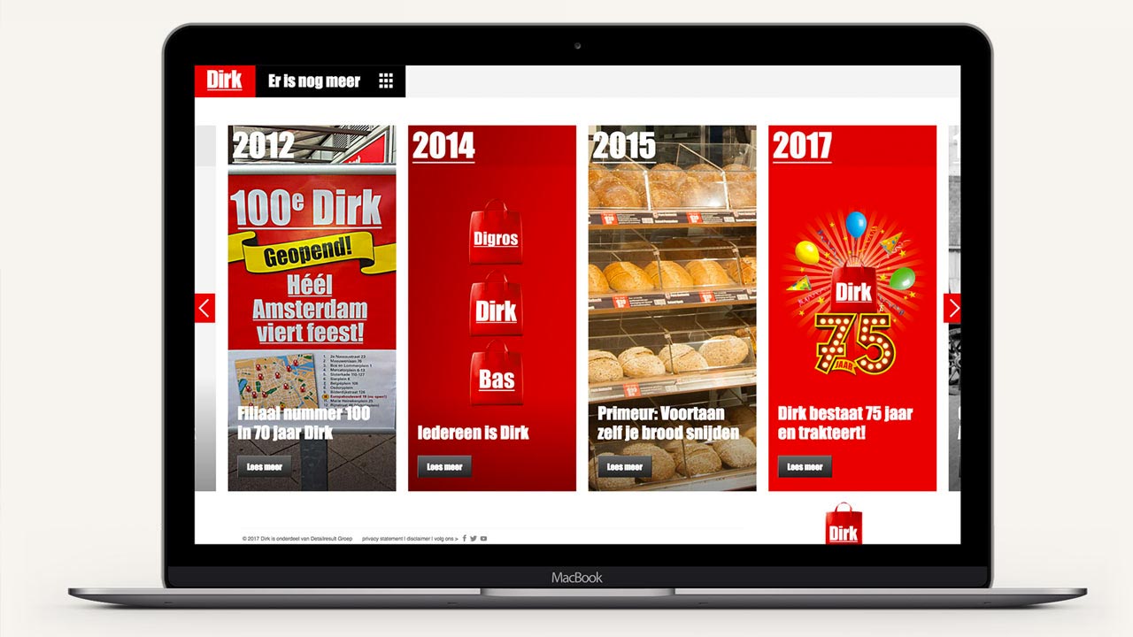 De historie van dit bedrijf visualiseerde ik in een uitgebreide site. Een leuk weetje: in 1956 verkocht deze supermarkt als eerste espresso in hun lunchroom. Tijdens dit project heb ik veel contact gehad met de archivaris van Dirk van den broek. Ik ontwierp de site, gaf presentaties voor de klant en begeleidde het bouwtraject met de developer. Als kers op de taart, gaf ik een minicursus WordPress, zodat de klant hun site zelf kan onderhouden.