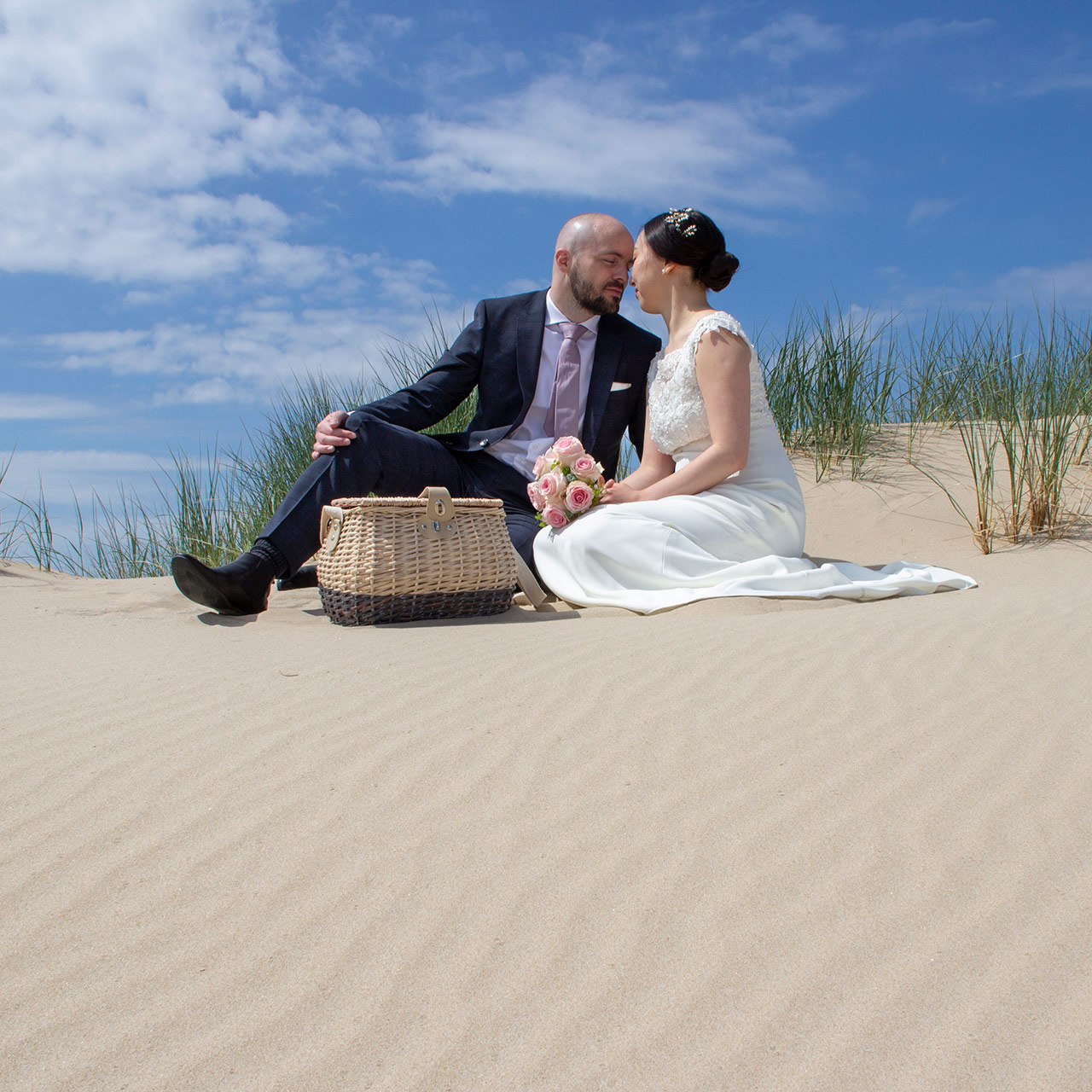 Wat een schitterende dag! Samen met het bruidspaar naar het strand en naar de bossen.